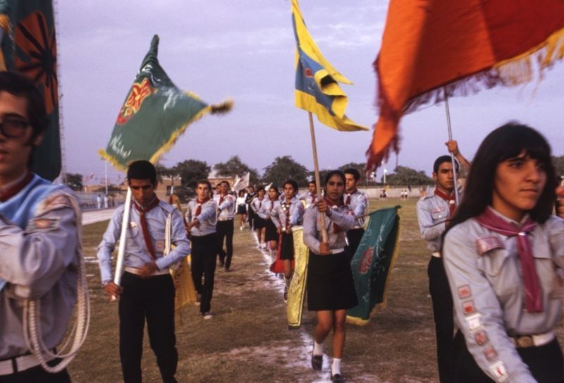 Asistentes a la celebración del cumpleaños del sha de Irán, en el estadio de Abadan, en la década de 1970.