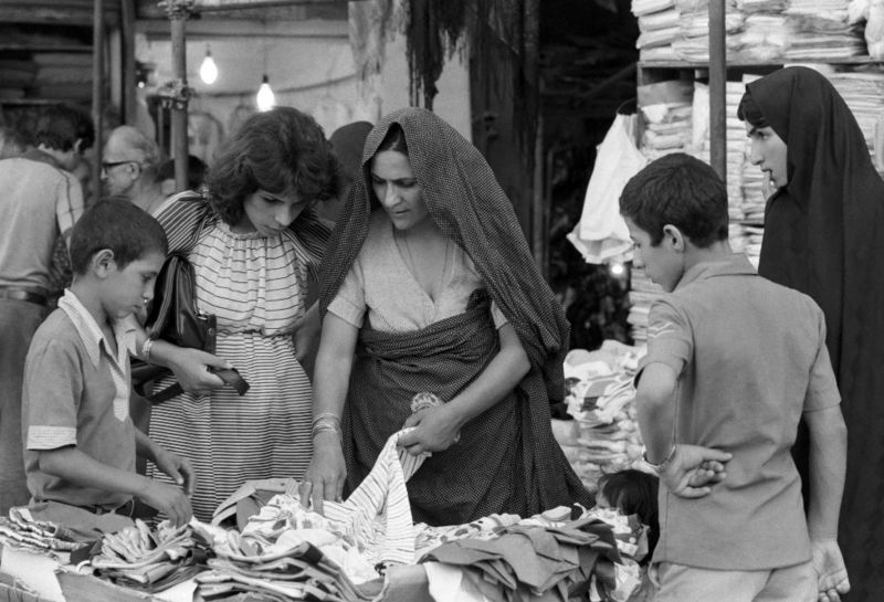 Comprando ropa en una calle de Teherán el 26 de agosto de 1978.