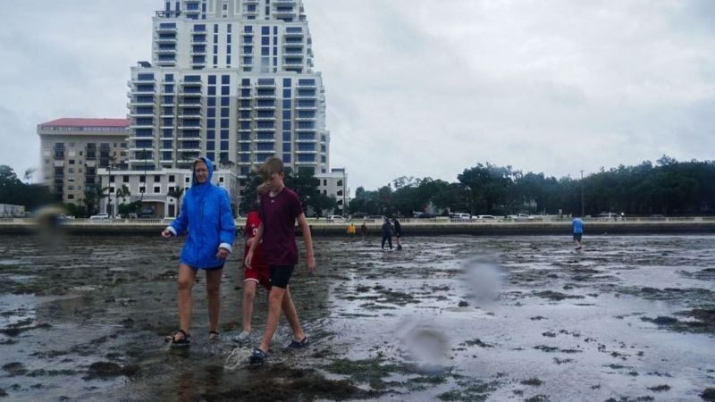 Esta hizo que en la mañana de este miércoles el agua del océano desapareciera de la Bahía de Tampa y de otras zonas, justo antes de que el ciclón categoría 4 tocara tierra con vientos sostenidos de 240 km/h.