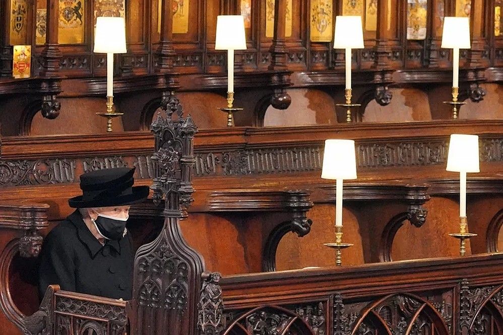 El funeral de Felipe se celebró el 17 de abril de 2021 y debido a las restricciones por el coronavirus, sólo se invitaron a 30 personas. Las fotos de la reina sentada sola en la Capilla de San Jorge impactaron a muchos como símbolo de su soledad y dolor.