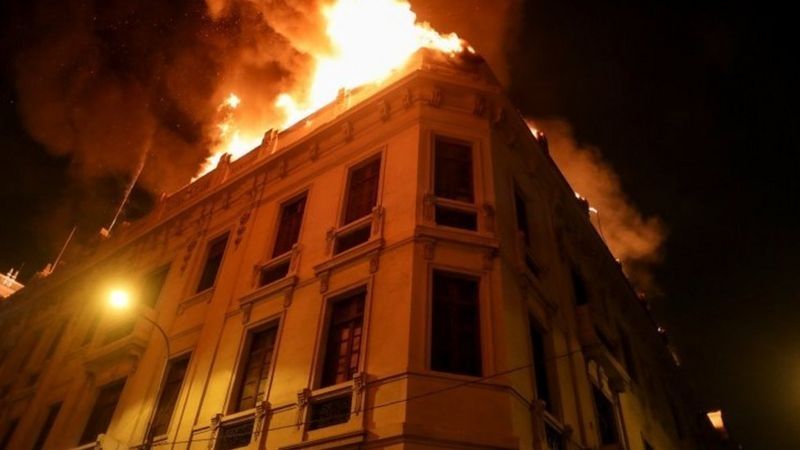 Decenas de unidades de Bomberos atendieron un gran incendio en un edificio de tres plantas en el centro de Lima, cuyo origen se desconoce.