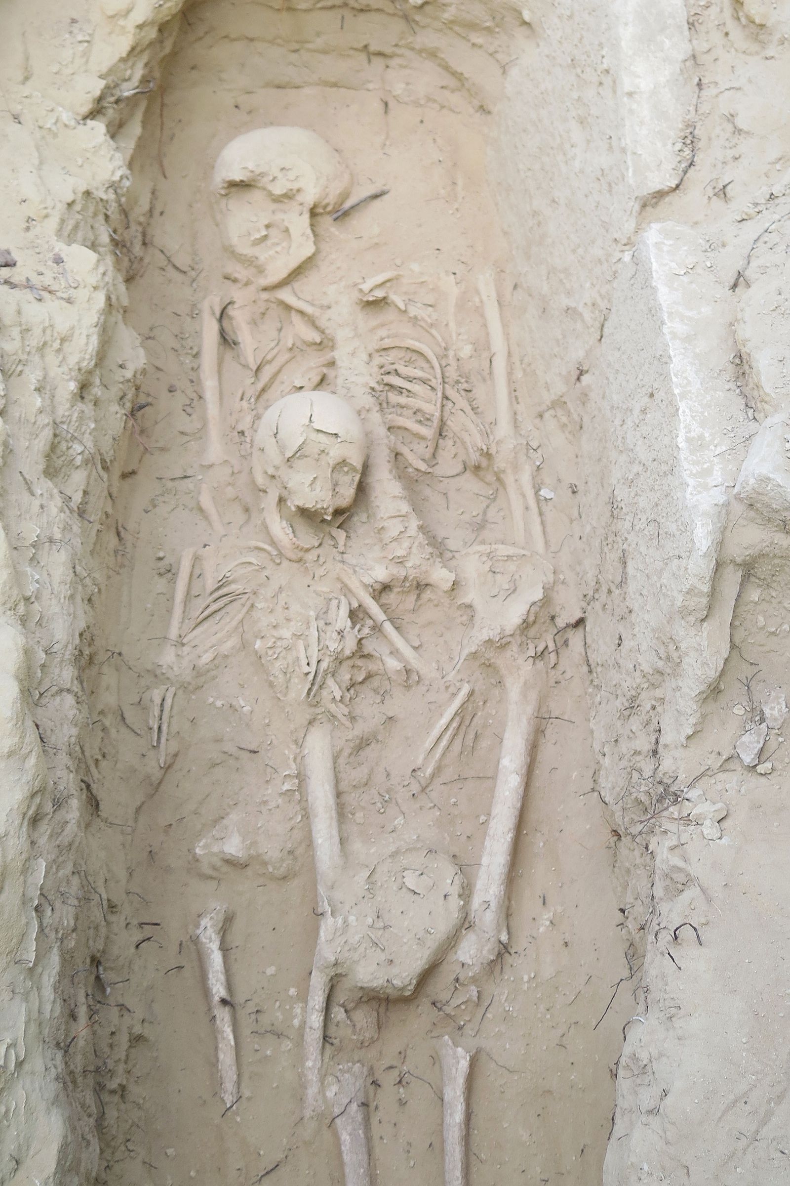 Se ven muertes "repentinas y contemporáneas", como por ejemplo conjuntos familiares de hasta tres individuos abrazados y sepultados al mismo tiempo (antes del 'rigor post mortem') con una causa que no puede ser otra que infecciosa. También se ha encontrado el cadáver de una joven que sostiene un bebe en brazos o unos cuatro niños enterrados a la vez.