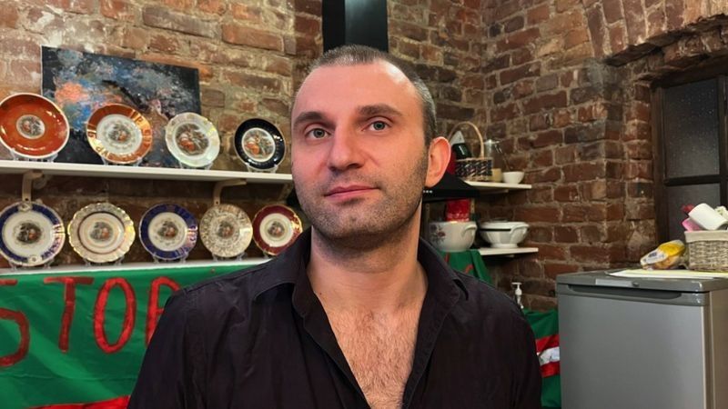 El activista LGBT Piotr Voskresensky cree que el vínculo con la guerra en Ucrania es "obvio". En su apartamento en el centro de San Petersburgo, me muestra las piezas que exhibe en su pequeño museo LGBT, el primero de Rusia. Abrió la exposición al público en septiembre del año pasado, pero tuvo que cerrarla una vez que se aprobó la nueva normativa.