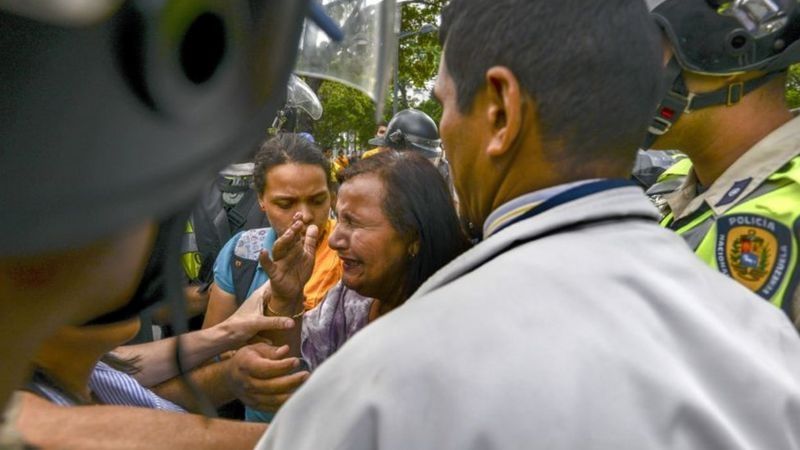 Dinorah Figuera en una protesta en marzo de 2017, en Caracas, de la que tuvo que ser evacuada después de que la policía la rociara con gas pimienta