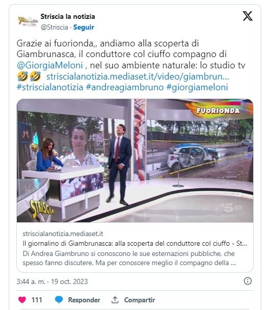 Replica Rt los dichos de Giambruno: "los audios se conocieron en el programa satírico de Mediaset 'Striscia la Notizia', en el que trabaja Giambruno. Los videos y audios filtrados evidenciaron comportamiento vulgar y comentarios indecentes del presentador hacia su compañera de televisión. En los audios se escucha la voz de Giambruno durante la grabación del programa: '¿Estás comprometida?'. Y pese a la respuesta afirmativa, prosiguió. '¿Eres una persona de mente abierta? ¿Cómo te llamas? ¿Ya nos conocemos tú y yo?. ¿Ya sabes que [nombre censurado por el programa] y yo tenemos una aventura? Lo sabe todo Mediaset. Ahora tú también, pero estamos buscando un tercer participante para que hagamos tríos, incluso cuartetos".