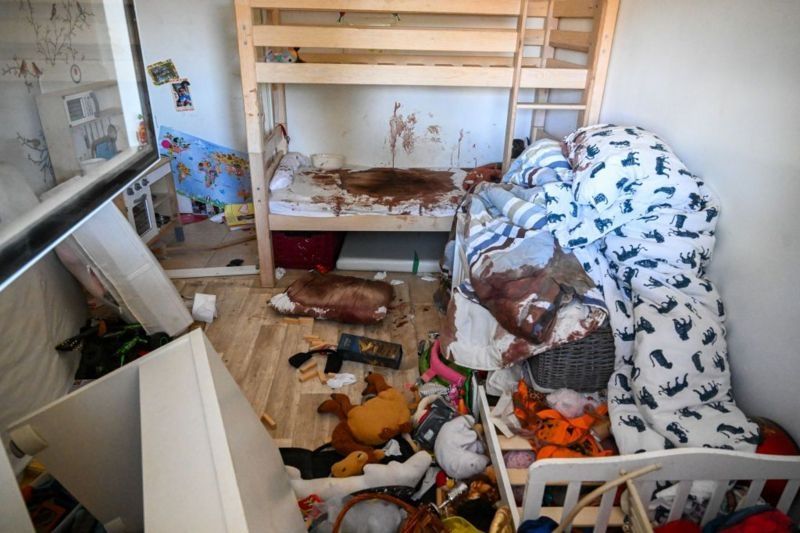 La mayoría de las víctimas de ambas partes del conflicto son civiles, como los habitantes de esta casa de Nir Oz, atacada por milicianos de Hamás el pasado 7 de octubre.