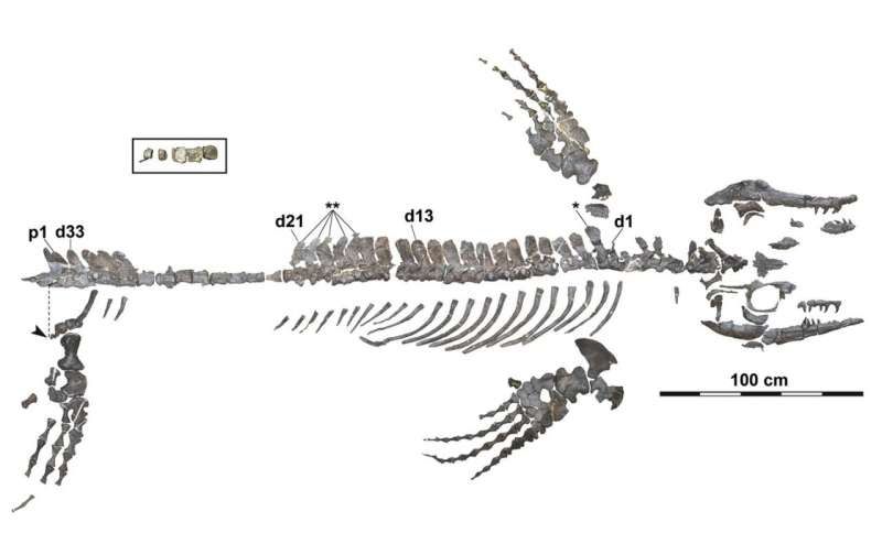 Otro reptil marino prehistórico llamado plesiosaurio usaba sus aletas para propulsión, pero no tenía una cola larga parecida a un timón, dijo.