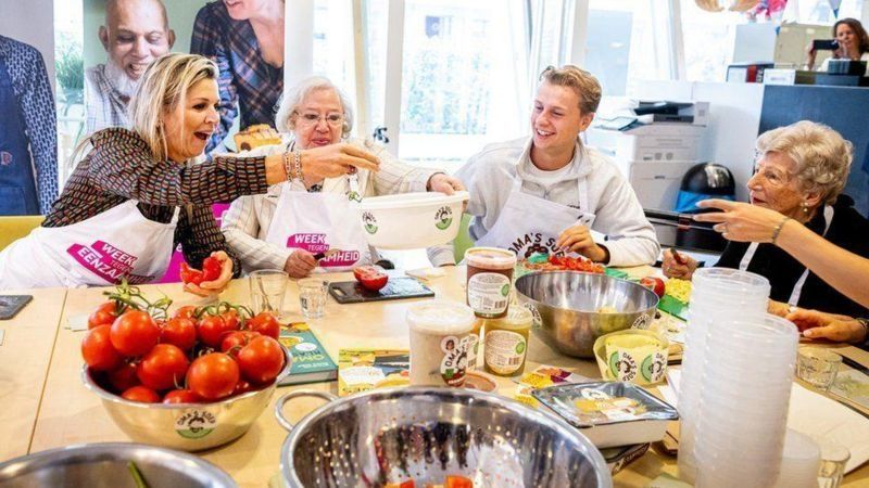Cientos de eventos especiales se organizan en todo el país. La reina Máxima de Países Bajos participó en uno de ellos en un taller de Oma’s Soep.