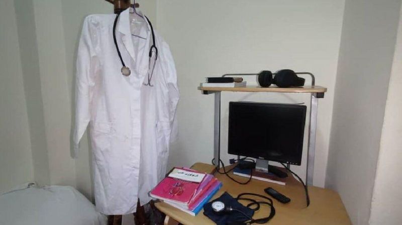 El guardapolvo blanco de la Dra. Rahima descansa sobre su mesa de estudio, junto con su estetoscopio y su monitor para tomar la presión. Son recuerdos de un tiempo más feliz.