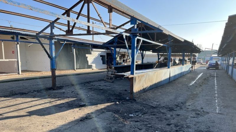 En aquel momento el mercado estaba cerrado, así que nadie resultó herido. Pero muchos puestos siguen cerrados y solo hay un puñado de clientes. En el exterior de algunos edificios hay sacos de arena apilados.