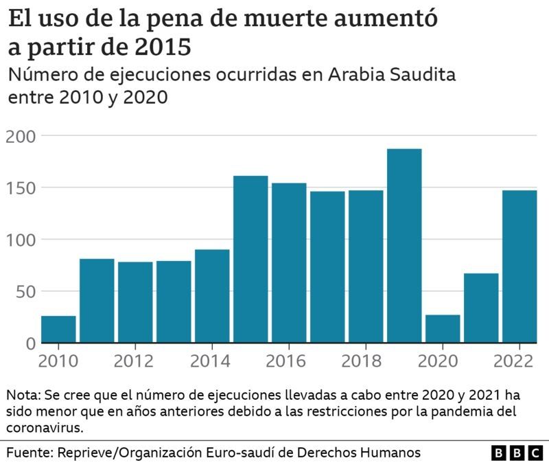 Sin embargo, casi cinco años después, Arabia Saudita sigue siendo uno de los ejecutores más prolíficos del mundo. Esto, a pesar de una pausa que coincidió con la presidencia del país del G20 y el inicio de la pandemia de covid-19.