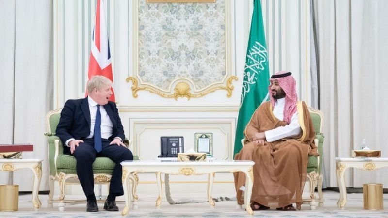 En marzo del año pasado, cuatro días después de la ejecución masiva de 81 hombres, el entonces primer ministro del Reino Unido, Boris Johnson, se reunió con Mohammed bin Salman para intentar persuadirle de que bombeara más petróleo para sustituir las importaciones de combustible ruso.