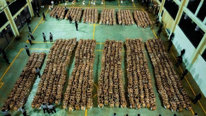 Las impresionantes fotografías de miles de presos llegando a la megacárcel de El Salvador