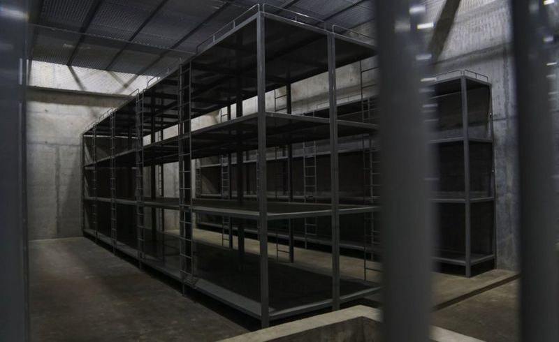 Cada uno tiene 32 celdas de unos 100 metros cuadrados (1.075 pies cuadrados) para albergar a "más de 100" prisioneros cada una, que dormirán en camarotes de lámina de hierro sin colchonetas.
