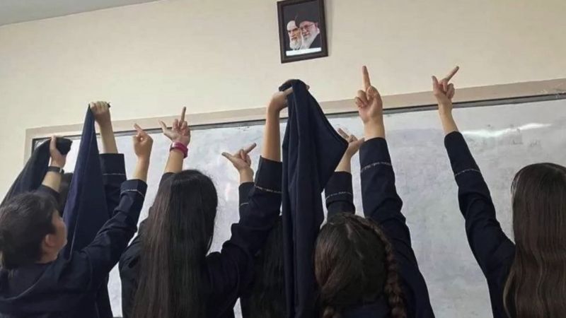 Las imágenes de colegialas quitándose el pañuelo en la cabeza para desafiar al gobierno islámico se volvieron virales.