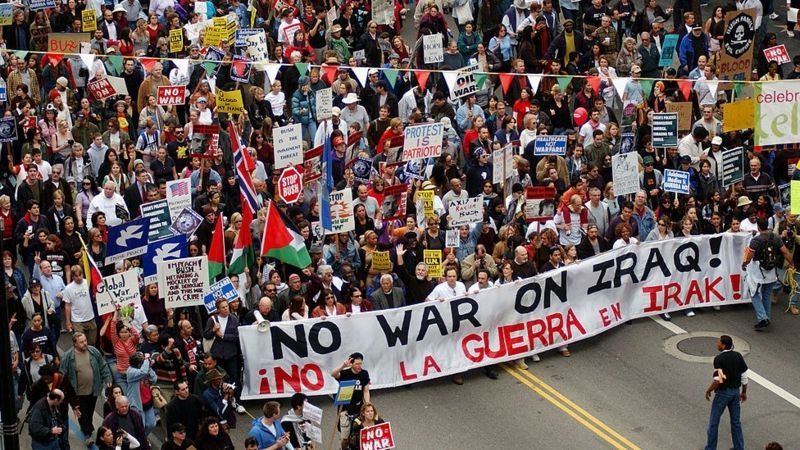 En las semanas previas a la invasión, países como Francia y Alemania mostraron su oposición y en varias ciudades del mundo se hicieron marchas contra la guerra.