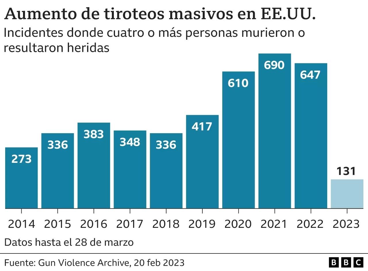 Cuántos tiroteos masivos como el de Nashville ha habido en EE.UU. en 2023 (y otras cifras que explican la cultura de las armas de fuego en ese país)
