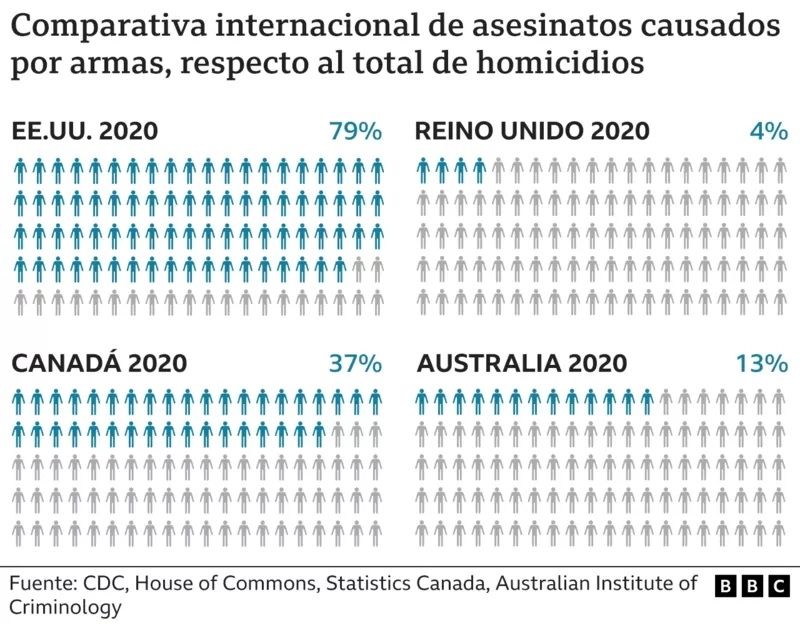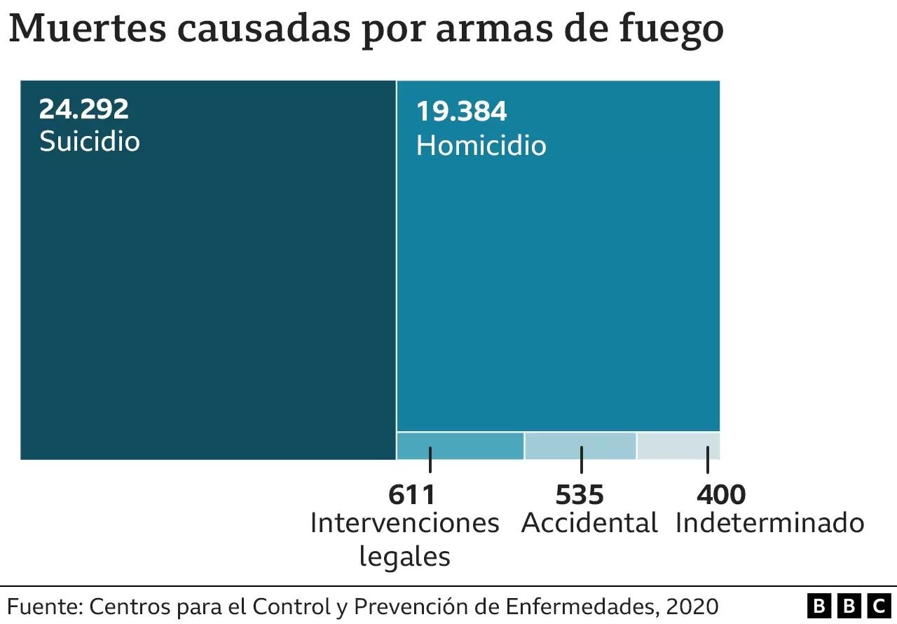 En 2021 murieron 48.830 personas con heridas relacionadas a armas de fuego en Estados Unidos, según los Centros de Control y Prevención de Enfermedades (CDC, por sus siglas en inglés).