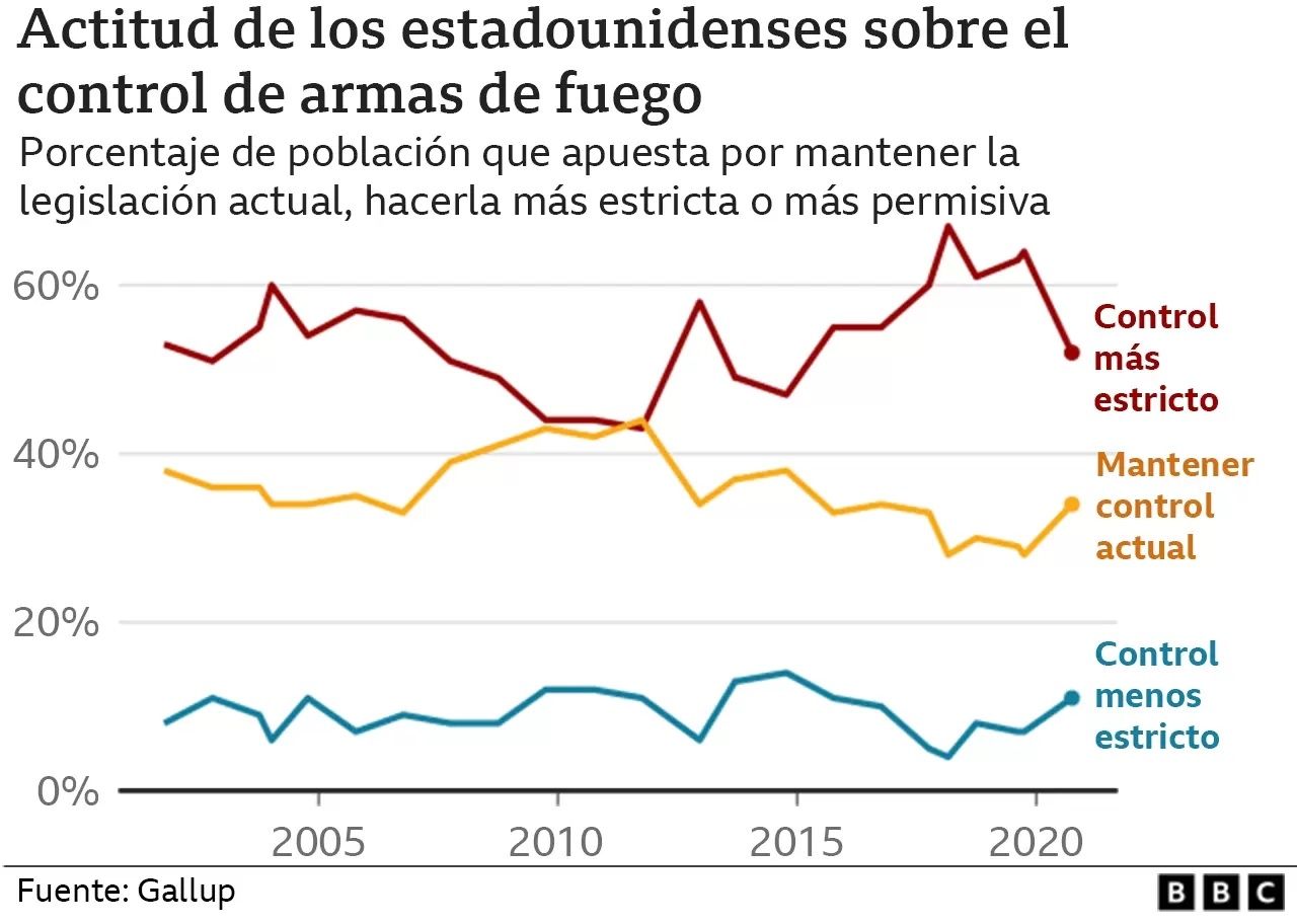 Un 57% de encuestados dijo querer leyes más estrictas, aunque este número disminuyó el año pasado según una encuesta de Gallup.