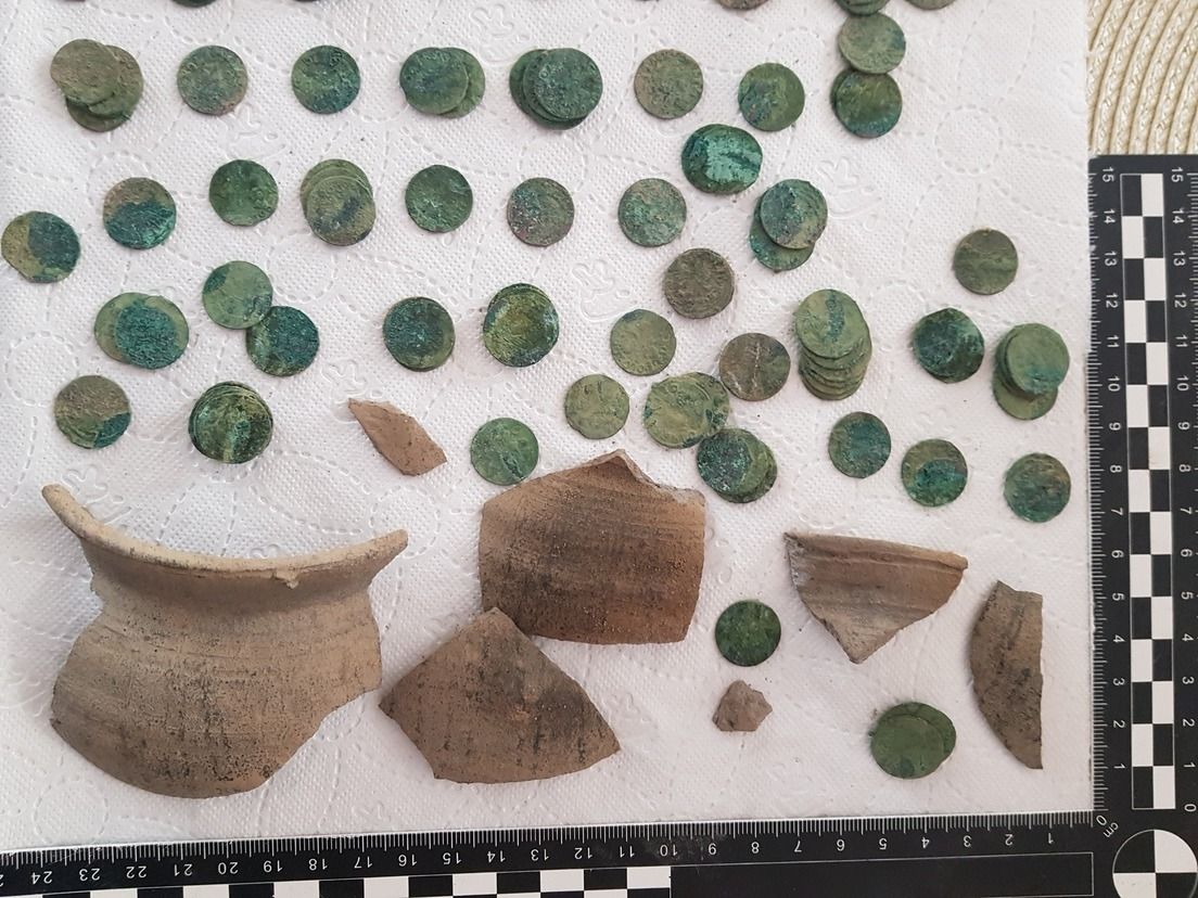 Fue sin buscarlo: en una zona cultivada de Polonia, apareció una jarra de cerámica ya rota, con unas mil monedas que tienen varios siglos de antigüedad.