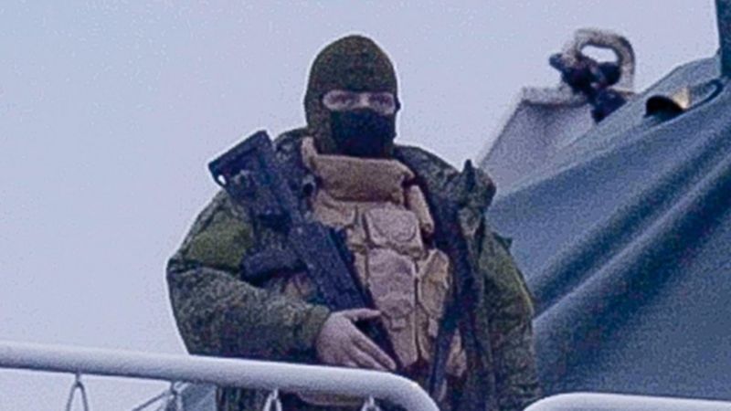 Cuando un reportero del equipo que participó en la investigación se acercó al Vladimirksy en un bote pequeño, un individuo enmascarado y que llevaba lo que parecía ser un rifle de asalto militar salió en tono amenazante.