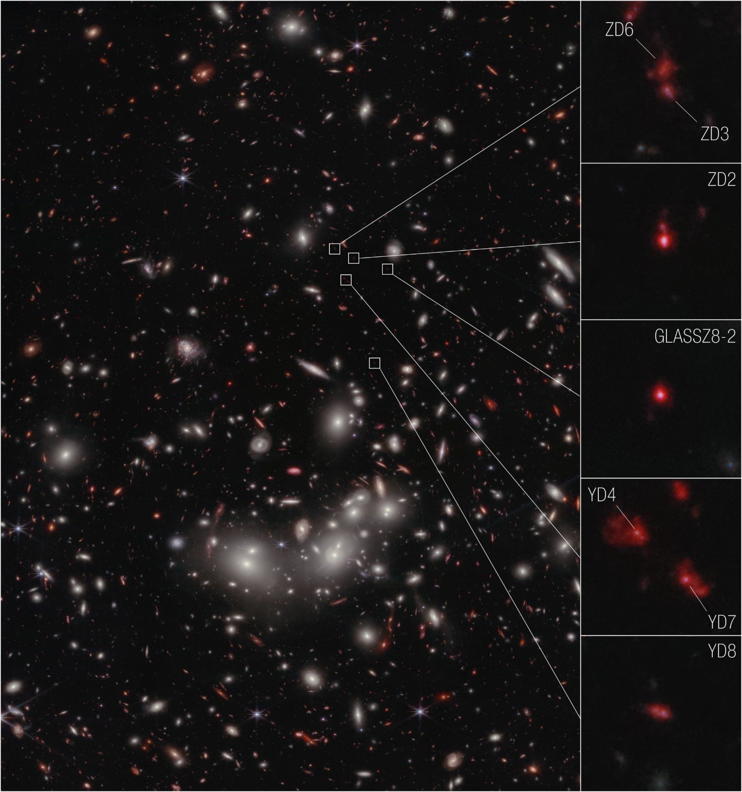 Las galaxias habían sido detectadas por el telescopio espacial Hubble, sin embargo, al no poder detectar la luz más allá del infrarrojo cercano, el Hubble no pudo ver más detalles.