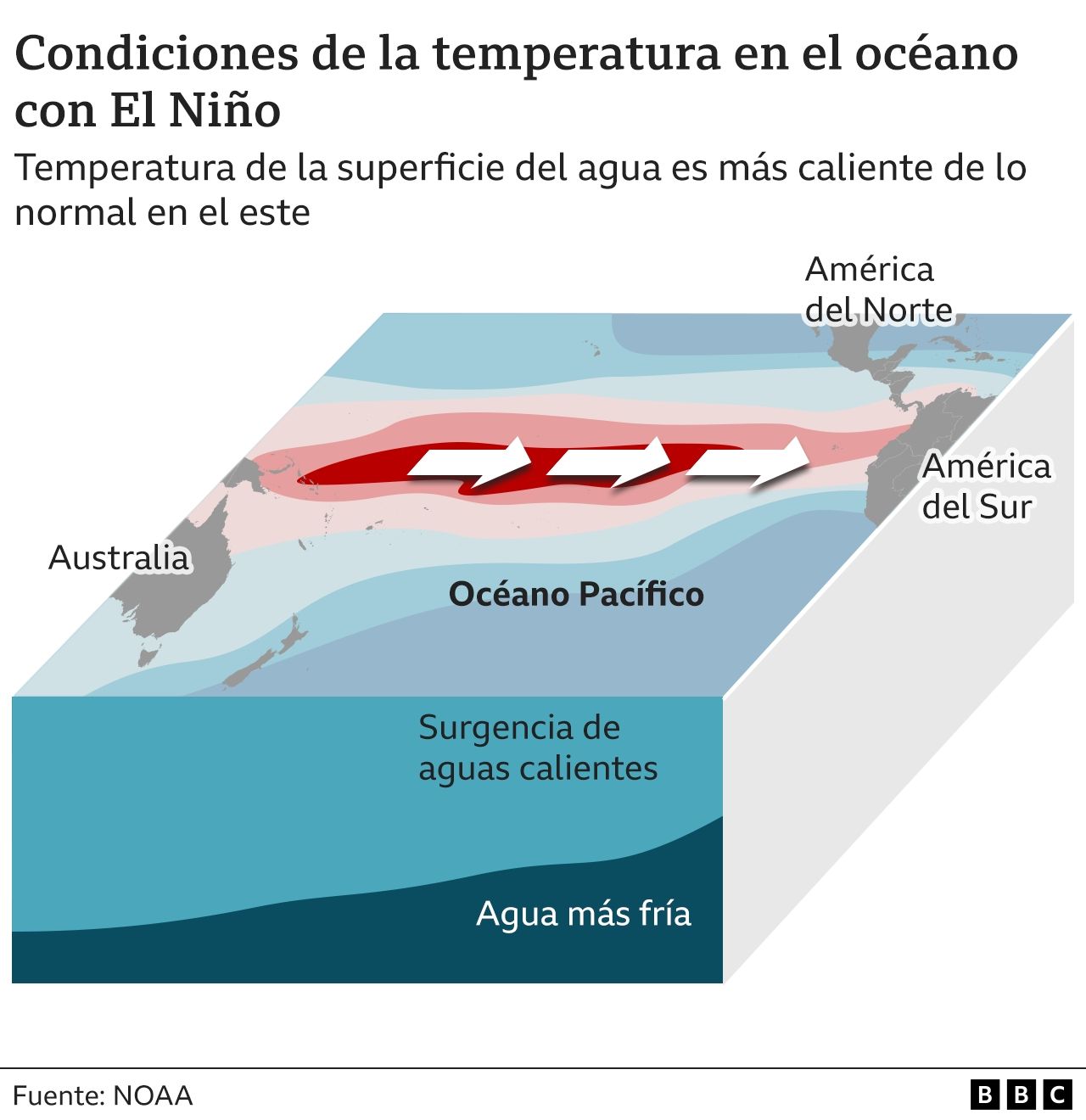 El experto señala que el movimiento de esas aguas cálidas propicia un aumento significativo de las temperaturas oceánicas del centro y el este del Pacífico.