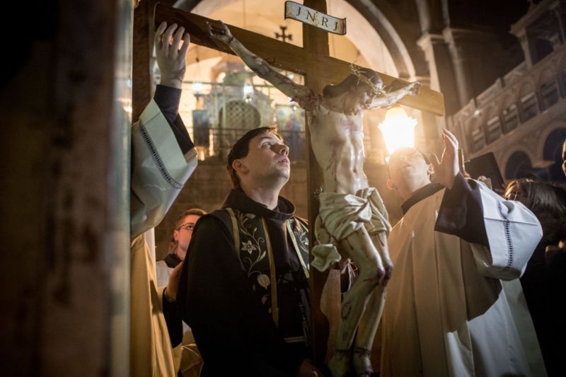 Estos acontecimientos bíblicos, conocidos como la Pasión de Cristo, tuvieron lugar según la tradición dentro de la Basílica del Santo Sepulcro de Jerusalén: El lugar más sagrado para la cristiandad.