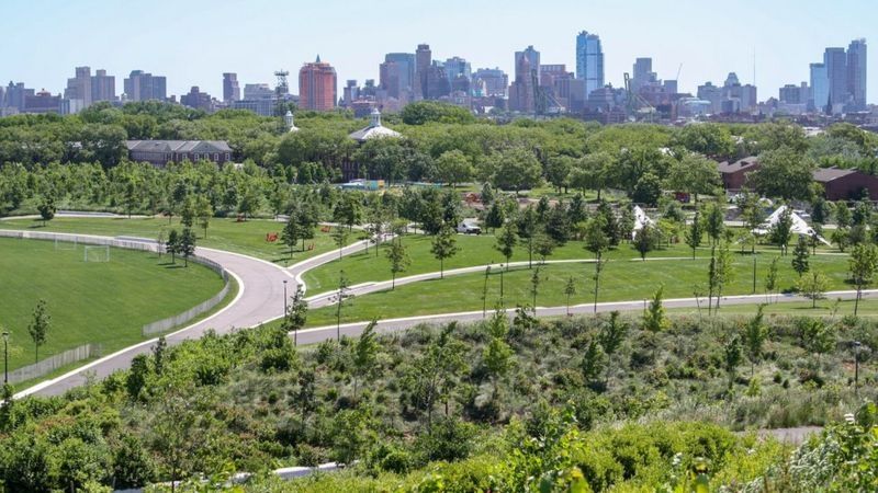 El frondoso oasis alberga 11 km de senderos para bicicletas; una granja urbana del tamaño de media hectárea; extensos prados y jardines; toboganes de tres pisos de altura; una pista de patinaje sobre hielo en invierno; y todo tipo de lugares de picnic, parques infantiles e instalaciones artísticas.