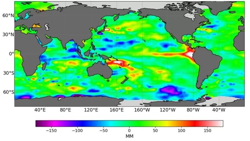 Cuando se forman en el ecuador, como se ha detectado en las últimas semanas, las ondas de Kelvin llevan el agua cálida, que se asocia con niveles más altos del mar, desde el Pacífico occidental hasta el Pacífico oriental, hacia la costa oeste de Sudamérica.