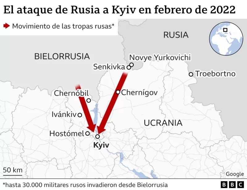 Cuando el Kremlin anunció su “operación especial” contra Ucrania, unos 30.000 de soldados rusos estacionados en Bielorrusia salieron con destino a Kyiv.