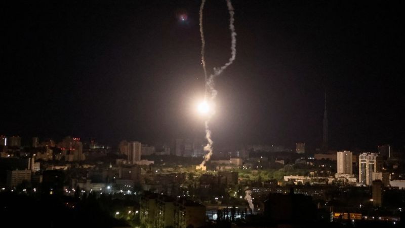 Los funcionarios locales dicen que todos los misiles o drones que tenían como objetivo a Kyiv fueron derribados y que los daños que hay provienen de la caída de escombros. Esto no ha podido ser verificado de forma independiente.