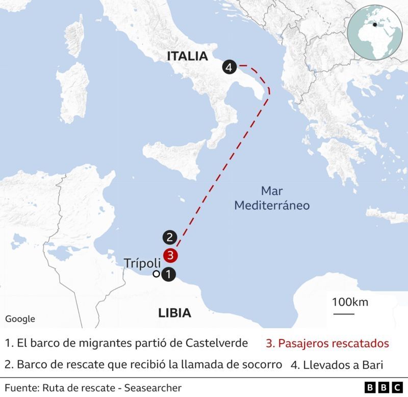Ninguna de las personas con las que había viajado a Libia estaba en el barco con él, y la BBC no pudo verificar de forma independiente sus afirmaciones, pero otros chicos cuentan historias similares.