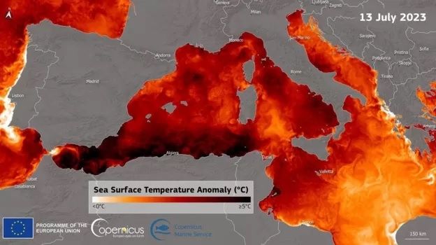 Investigadores también han estado monitoreando un gran ola de calor marina en curso en la costa oeste de EE.UU. y Canadá que se formó en mayo. Mientras que la ola de calor ha disminuido desde entonces en el noreste del Atlántico, según la ONG científica Mercator Ocean International, otra en el Mediterráneo Occidental parece estar intensificándose, sobre todo alrededor del Estrecho de Gibraltar.