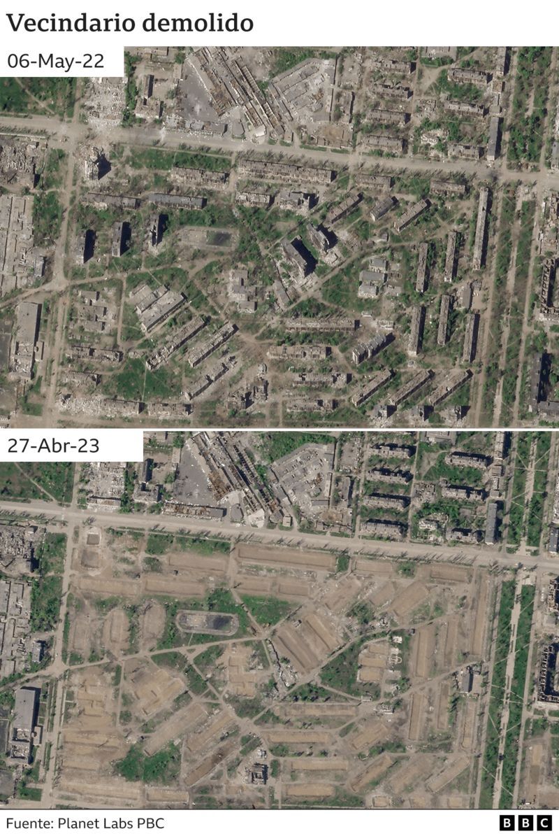 Entre ellos se encuentra un barrio entero -con una superficie de unos 315.000 m2, según las imágenes de satélite- en el este de la ciudad, otra parte de Mariúpol muy afectada por los combates.