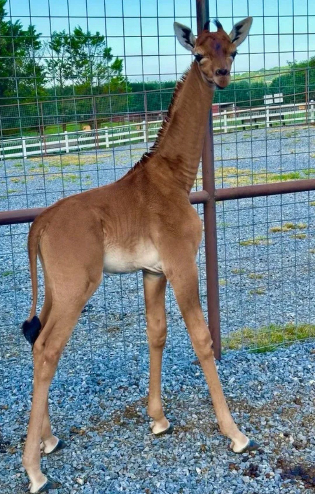 Según reportan los medios de ese país, entre ellos Watch Now, es una de las jirafas "más extrañas del mundo y nació a finales de julio en el zoológico de Brights, en el estado de Tennessee".