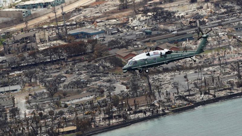 Joe Biden sobrevoló en el helicóptero presidencial la devastada localidad de Lahaina.