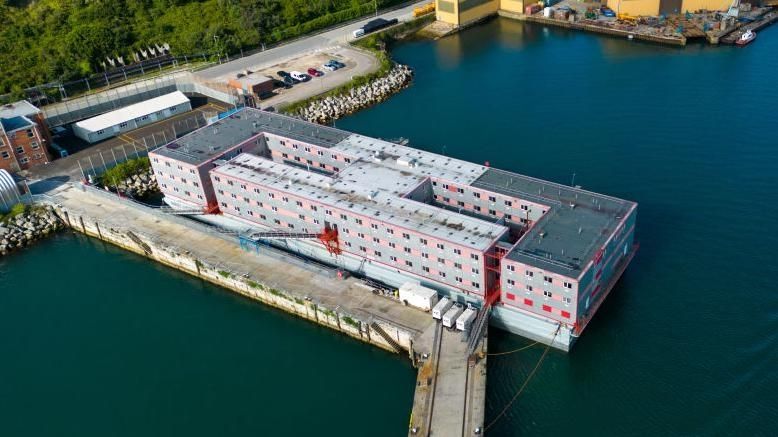 Amarrada en el puerto de Portland, en Dorset, Inglaterra, esta barcaza es la primera que contrató el gobierno en el marco de una política que busca reducir los costos de alojamiento destinados a los solicitantes de asilo.