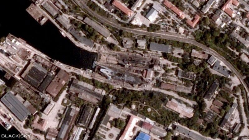 Las imágenes satelitales de la escena mostraron dos buques chamuscados.