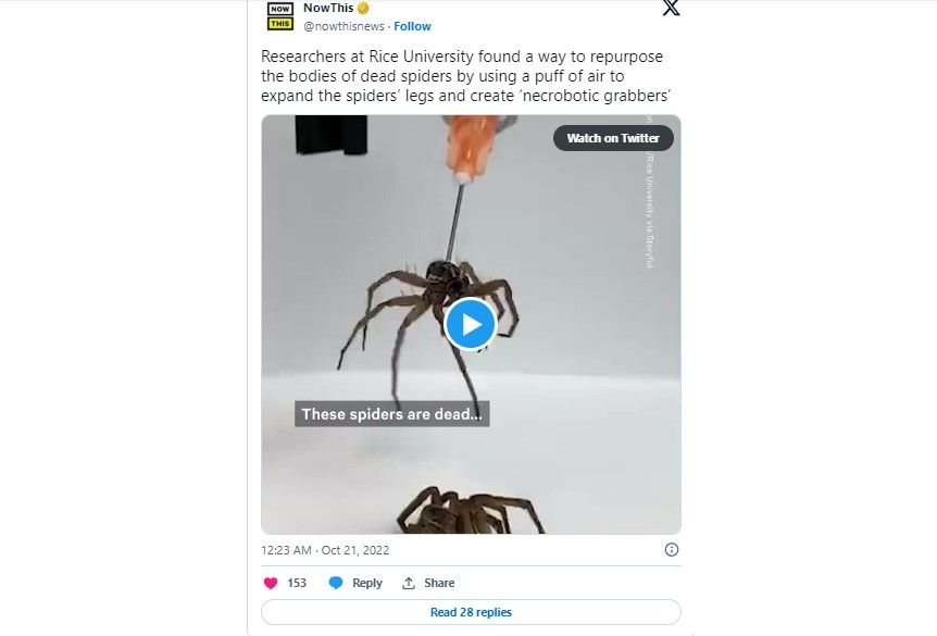 Este año, los premiados en ingeniería mecánica fueron Te Faye Yap, Zhen Liu, Anoop Rajappan, Trevor Shimokusu y Daniel Preston, un equipo de científicos de India, China, Malasia y Estados Unidos: en 2022, convirtieron arañas muertas en pinzas robóticas.