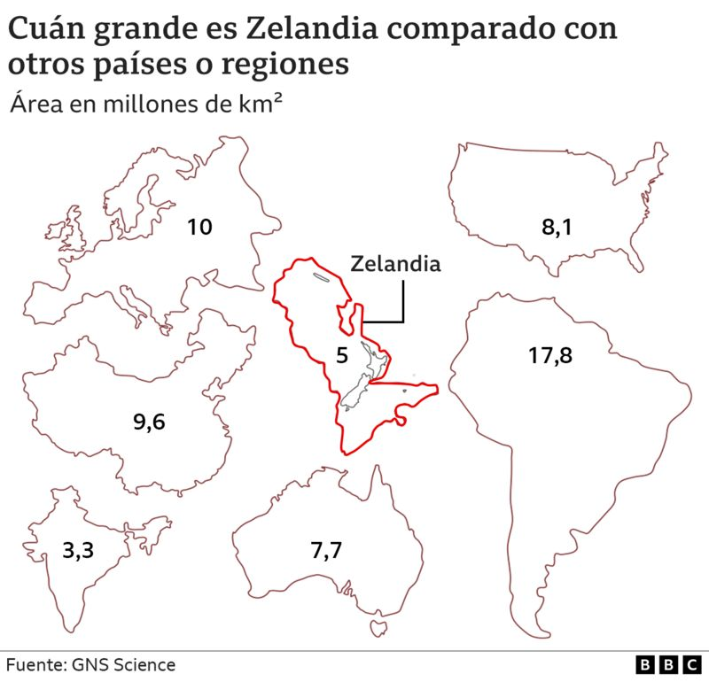 El mapa que muestra cuán grande era Zelandia, el continente sumergido en el Pacífico que tardaron 375 años en encontrar