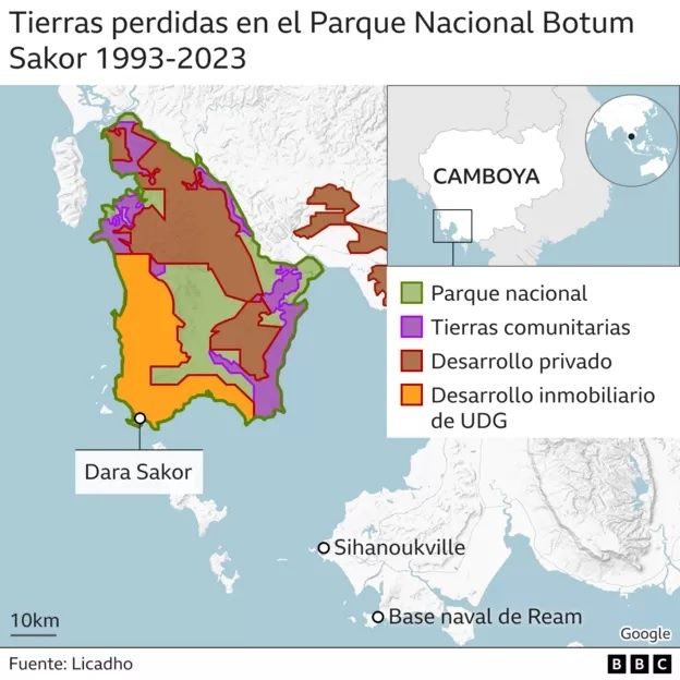 Dara Sakor es el tipo de desarrollo favorecido por el ex primer ministro de Camboya Hun Sen. Tiene una escala masiva, pero fue concebido en casi total secreto. La BBC descubrió que hubo una evaluación mínima del impacto ambiental o humano.