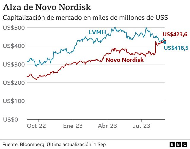 Un medicamento para bajar de peso ha llevado a su fabricante, el gigante farmacéutico Novo Nordisk, a posicionarse como la empresa más valiosa de Europa, destronando al conglomerado de lujo francés LVMH (Louis Vuitton).