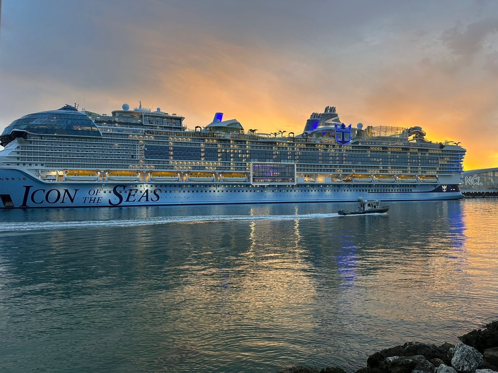 El Icon of the Seas no pasa desapercibido. Desde su arribo a las costas de Miami, es la gran atracción que la gente se acerca para ver en detalle y tener aunque sea una imagen del llamativo gigante del mar.