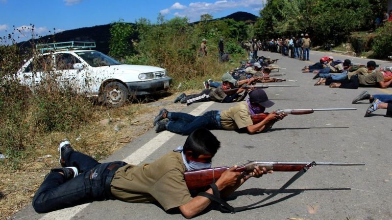 En 2020 también fueron presentados varios niños como parte de una policía comunitaria en el pueblo vecino de Alcozacán "como una medida de presión a las autoridades ante la violencia que se vive", le explica a BBC Mundo el periodista Arturo de Dios Palma.