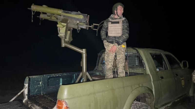 Las mujeres -y su único colega hombre, Serhiy- operan con una ametralladora montada en una camioneta.