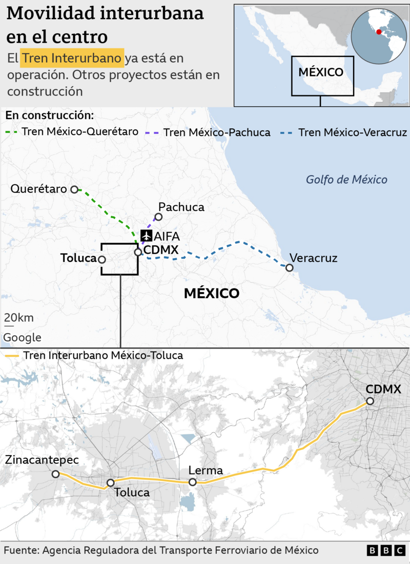 Otras dos grandes líneas han comenzado a ser construidas: México-Querétaro y México-Pachuca. Y en el plan de la nueva presidenta, Claudia Sheinbaum, está reabrir a los pasajeros otras tres rutas: México-Veracruz, México-Nogales y México-Nuevo Laredo.