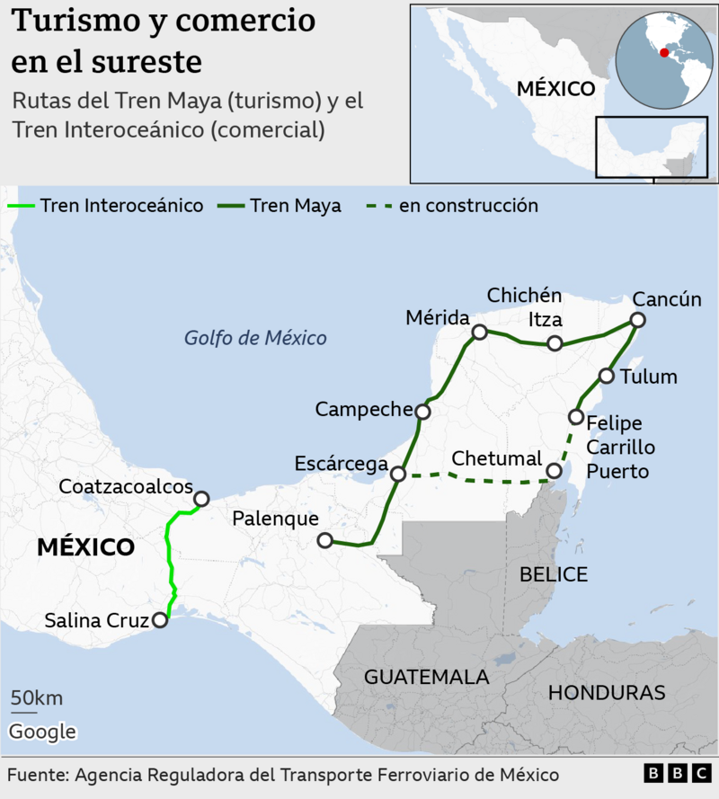 "A partir de la experiencia del Tren Maya queda claro que lo que se debe y puede conectar con un servicio de pasajeros es el centro y norte del país, como lo estaba en el pasado", le dice a BBC Mundo el director de la Agencia Reguladora del Transporte Ferroviario, Andrés Lajous.