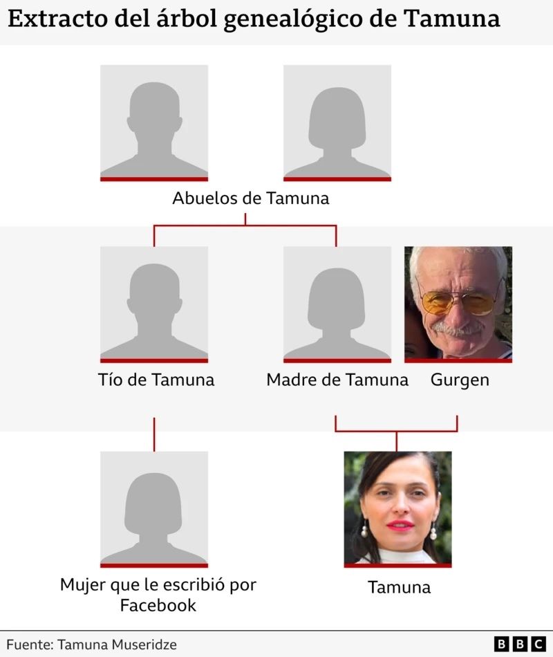 Una semana después, llegaron los resultados de la prueba de ADN, los que indicaban que Tamuna y la mujer de Facebook eran, en efecto, primas. Armada con estas pruebas, Tamuna consiguió convencer a su madre para que reconociera la verdad y revelara el nombre de su padre. Se trataba de un hombre llamado Gurgen Khorava.
