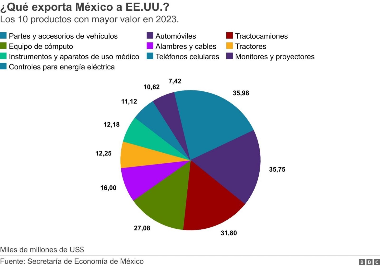 Los 10 productos que México exporta más a EE.UU. (y que serían los más afectados por los aranceles que considera Trump)